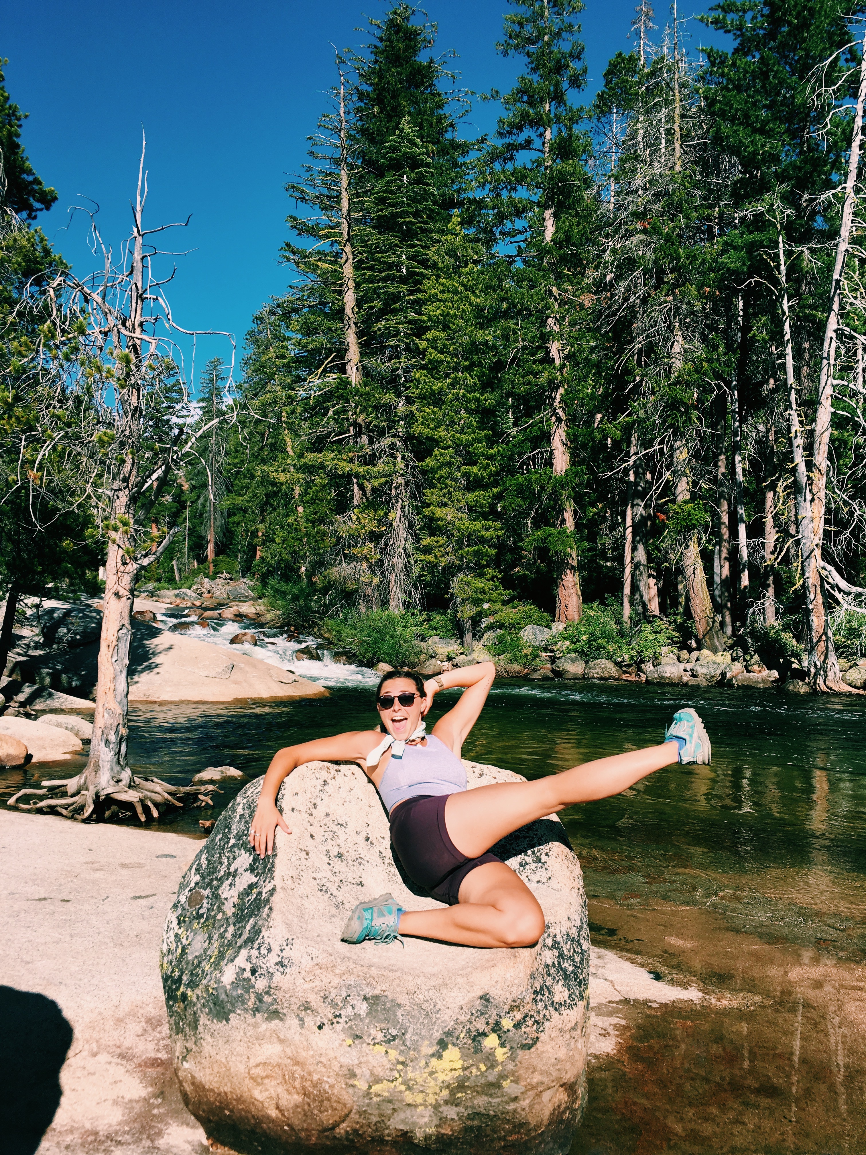 We got lucky and won the permit lottery for Happy Isles. The ranger gave us the low-down about the trail, where we’re allowed to camp (40 ft from the trail and water), how to store our food (in a bear box, 20 ft away from us), how to dispose of our waste (dig a hole 6 in deep and pack out the tissue, unless it’s the Whitney area and we’ll have to pack out our waste in a wag bag), and other important information. The ranger gave us our permits and we were on our way. We started heading in the direction of the trail and along the way, we saw our first bear. There was a crowd forming nearby, held back by a couple rangers that formed a perimeter around it.