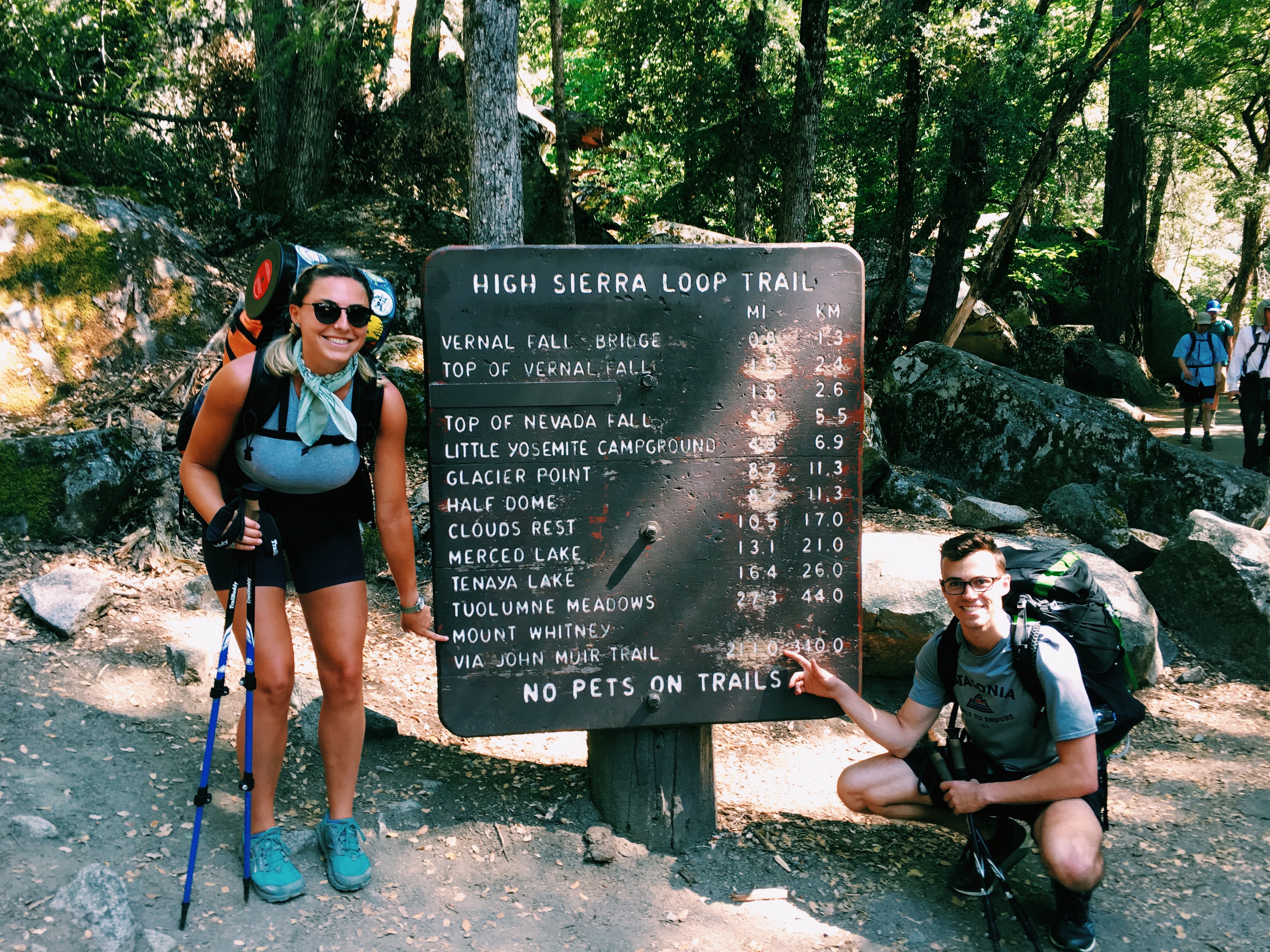 We started on the trail, snapping a pic with the sign that reads ‘Mt. Whitney 211 miles” and the various waterfalls and mountains views we got along the way.
