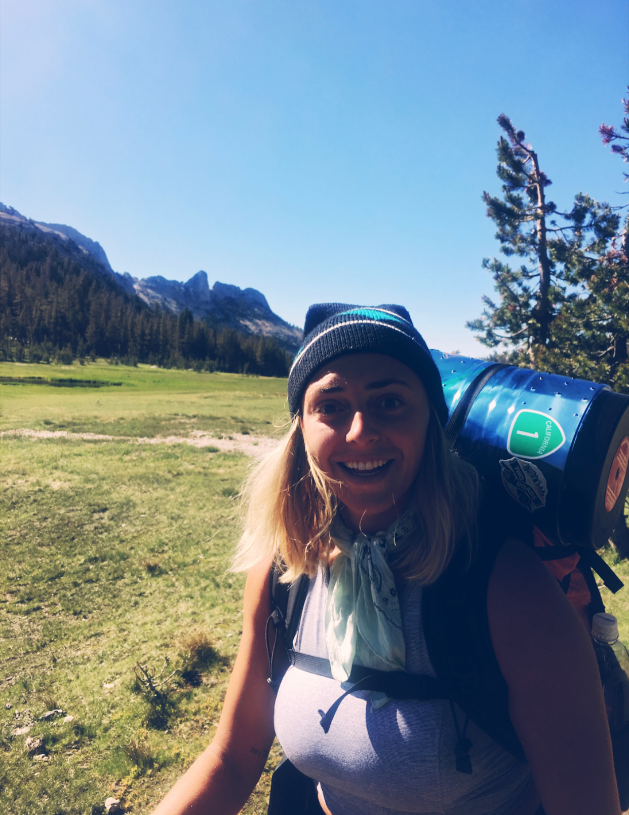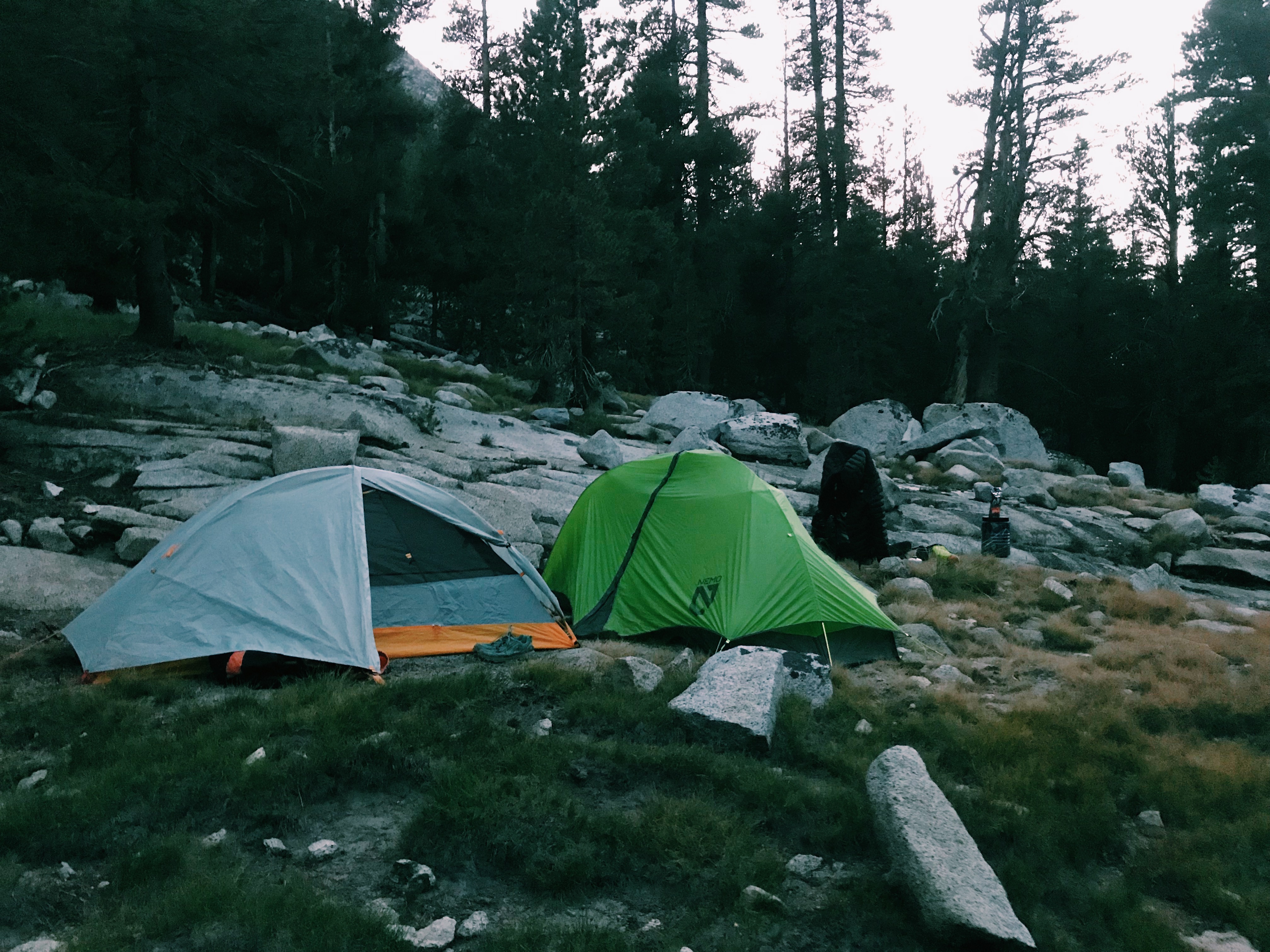 The people at the post were super kind and let me in the back where they had hiker boxes for people in my situation. Luckily there were plenty of (vegan) foods to choose from, enough to hold me over until my next re-supply. We met some young girls at the picnic tables who were also on the JMT enjoying the food from the little grill. We got ourselves some food and beer (I had a salad, the vegan chili and an IPA.) We talked about our plans, where we’re going to camp that night, where the next re-supply is and so on. After eating, we decided to continue on our way and make it as close to Donahue Pass as possible so when we woke up in the morning we would have fresh legs for the climb.