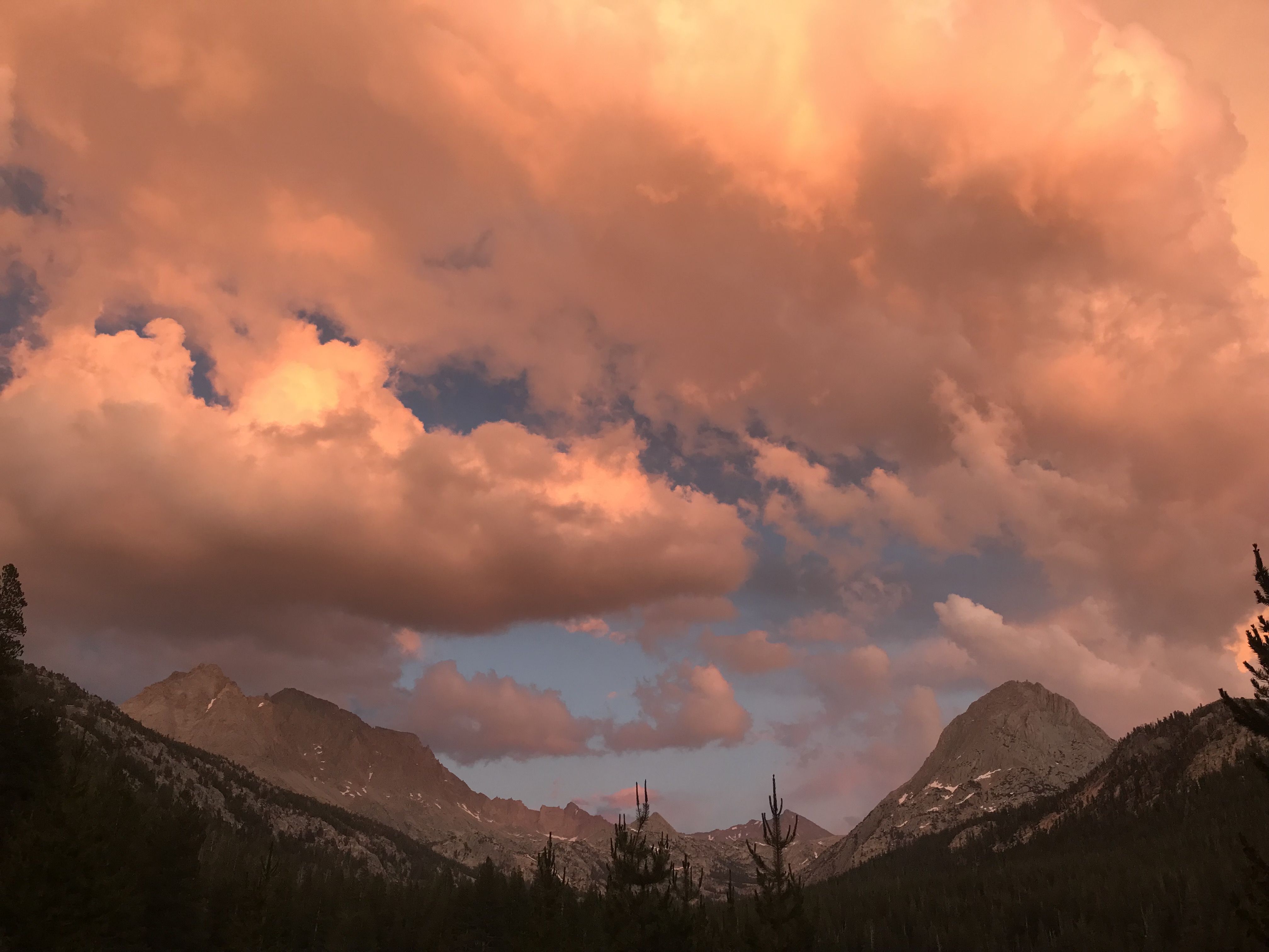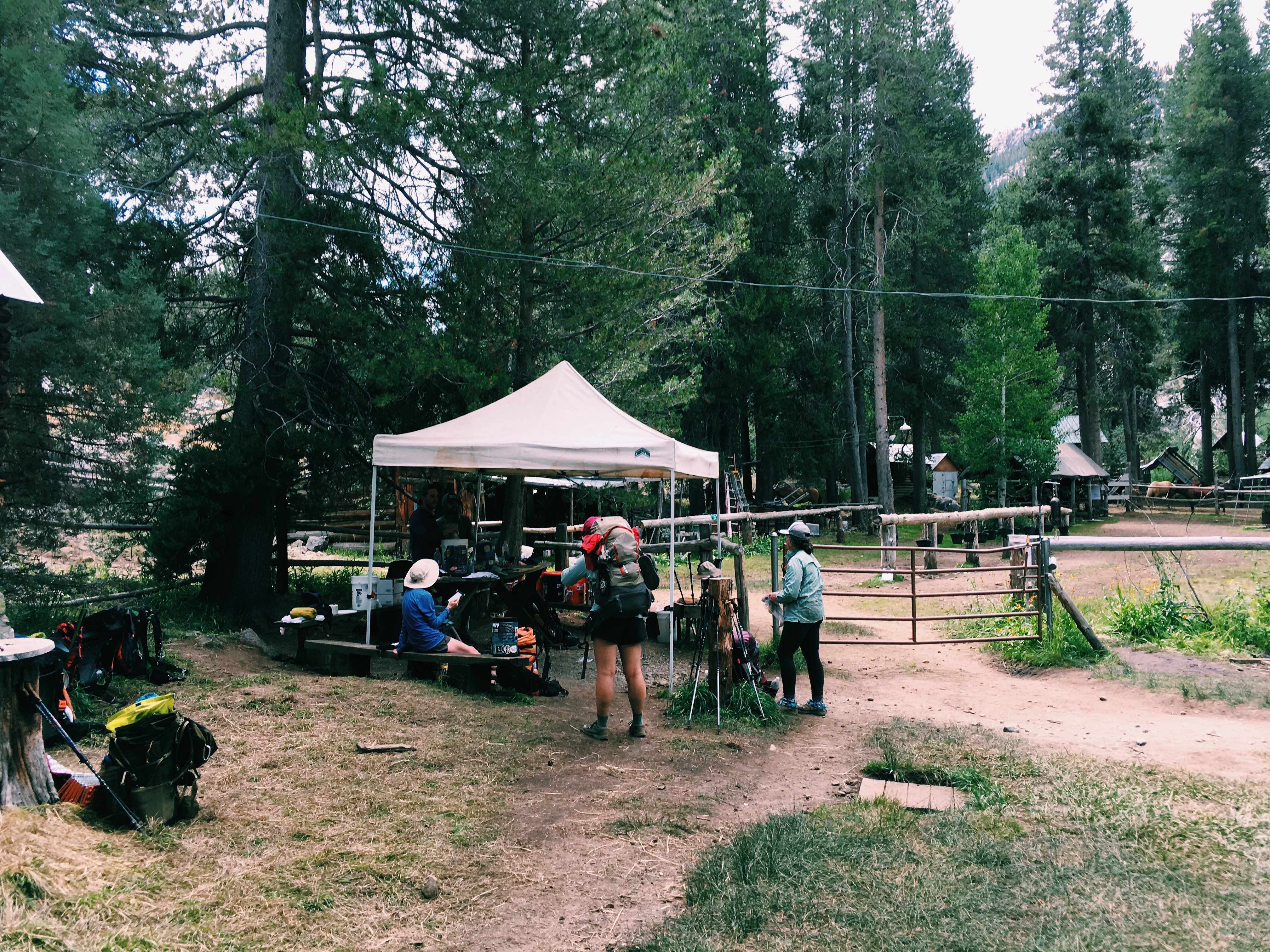 Overall, today was a great day. We hiked the 5 miles to MTR this morning, and were surprised to run into Swede there, hanging around the hiker buckets. MTR had an amazing hiker box, well organized and accommodated a vegan! There were so many flavored oatmeals, bars, and dark chocolate, peanut butter, etc. All the hikers chatted and topped off our bear boxes with food for the remaining days to Mt. Whitney. We also charged up our devices since it would be out last one for the next 100+ miles of trail ahead. Medicine Man and Peter both rolled in an hour or two later picking up their re-supply boxes and giving us the surplus.