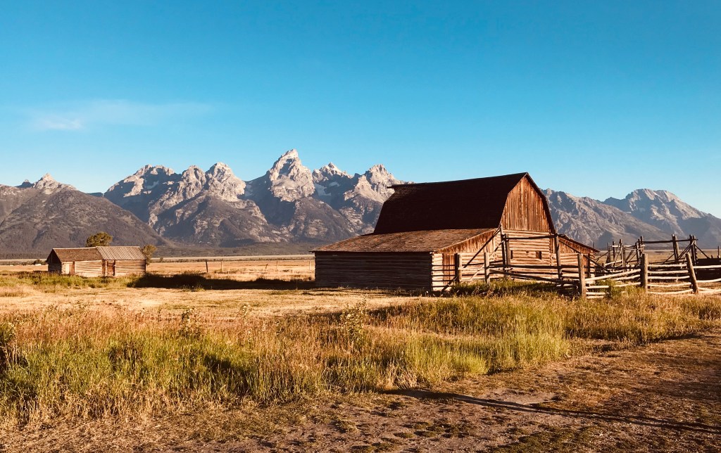 We got up early the next morning in hopes that a permit might be available for us. The office opened at 8 am and we aimed to get there at 6:30. On our way back to the Craig Thomas Discovery Center, we made a quick stop at the Mormon Row Historic District to check out the Moulton Barns. They are hand-built wooden barns that make an excellent photo opportunity with the Tetons in the background. You have a pretty good chance of spotting wildlife here in the open grassy plain. We were lucky to see a herd of bison crossing the field as we drove by.