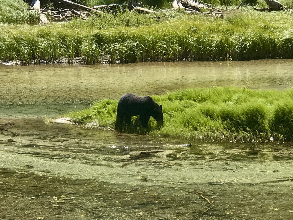 I hiked a little further into Cascade Canyon and was rewarded with some wildlife sightings. Moose, both male and female, and three bears! One of them was wading in the water, going for a swim.