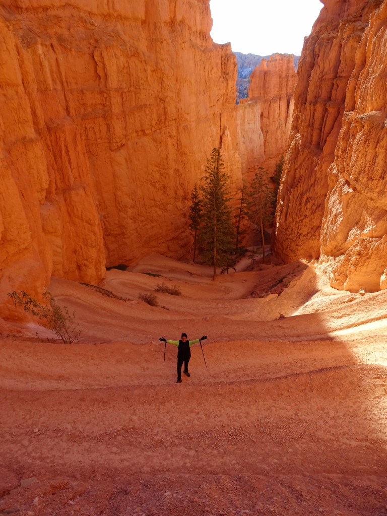 We soon made it to the entrance station at Bryce Canyon National Park and shortly after turned into the parking lot at Sunset Point. It was around 35 degrees and there was snow on the ground so it was cold but we dressed in layers anticipating the sun and hiking to warm us up as the day wore on.