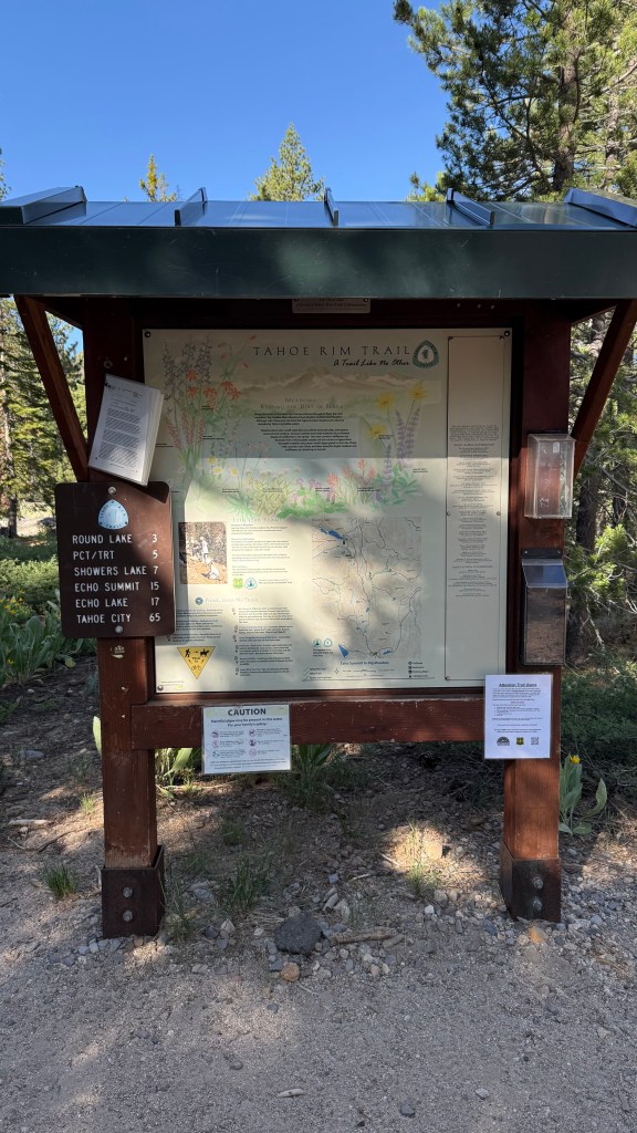 I had been looking forward to today. Not only would there be more water sources and lakes, but the TRT will meet the PCT! The PCT and TRT overlap for about 50 miles, through one of the most beautiful and popular sections of the trail, the Desolation Wilderness that I would be getting to tomorrow. I love hiking alongside PCT hikers and chatting with them about their experiences on trail, so I was really looking forward to this section of trail.