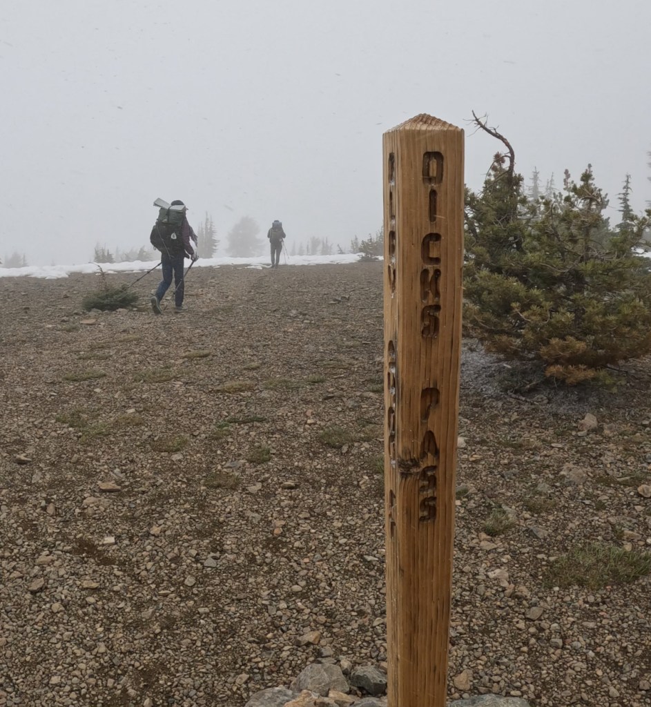 At the top of the pass, we ran into another 2 PCT hikers who seemed more concerned about the weather and were considering turning around. One of them had slipped on snow a few days earlier requiring a hospital visit and stitches and they wanted to play it safe. Their concern for safety (and willingness to communicate with me) comforted me, so I decided to tag along with these new hikers instead.