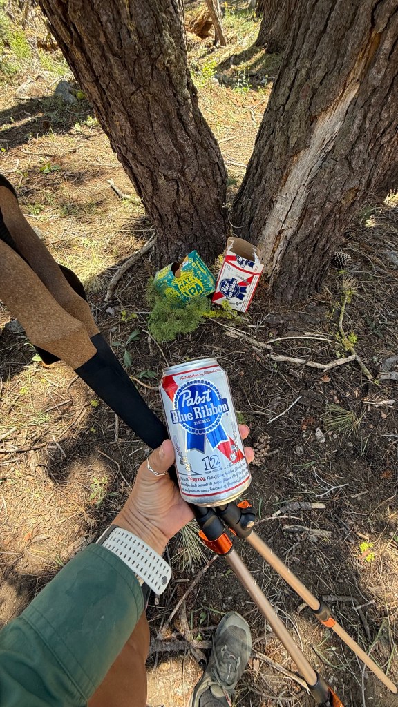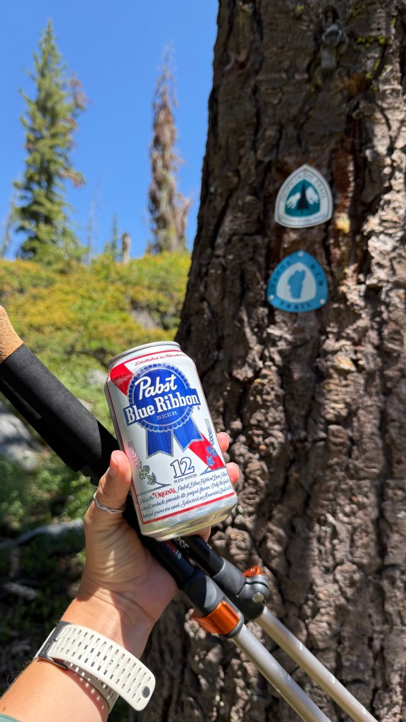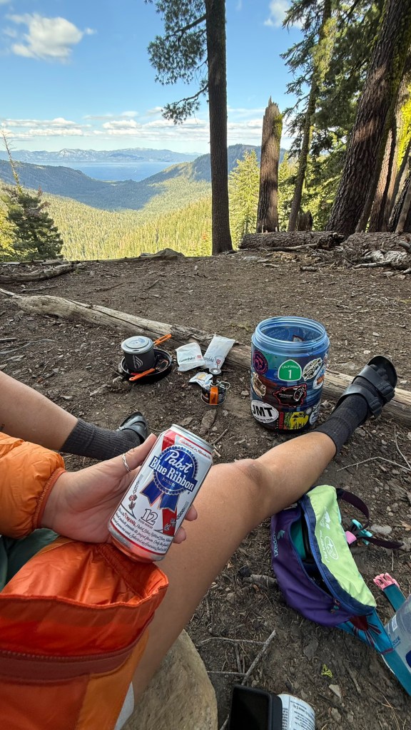 Trail magic is something usually reserved for thru-hikers on long trails like the PCT, and me still being on the section that overlaps with the PCT, it makes sense that I would find some here. Some trail angels set up at trailheads with yummy food, some offer rides to town, and some cache water, beer, and other beverages along the trail. This one was 2 cases of beer: IPA and PBR. I took a PBR and saved it in my pack for later to have with my dinner.