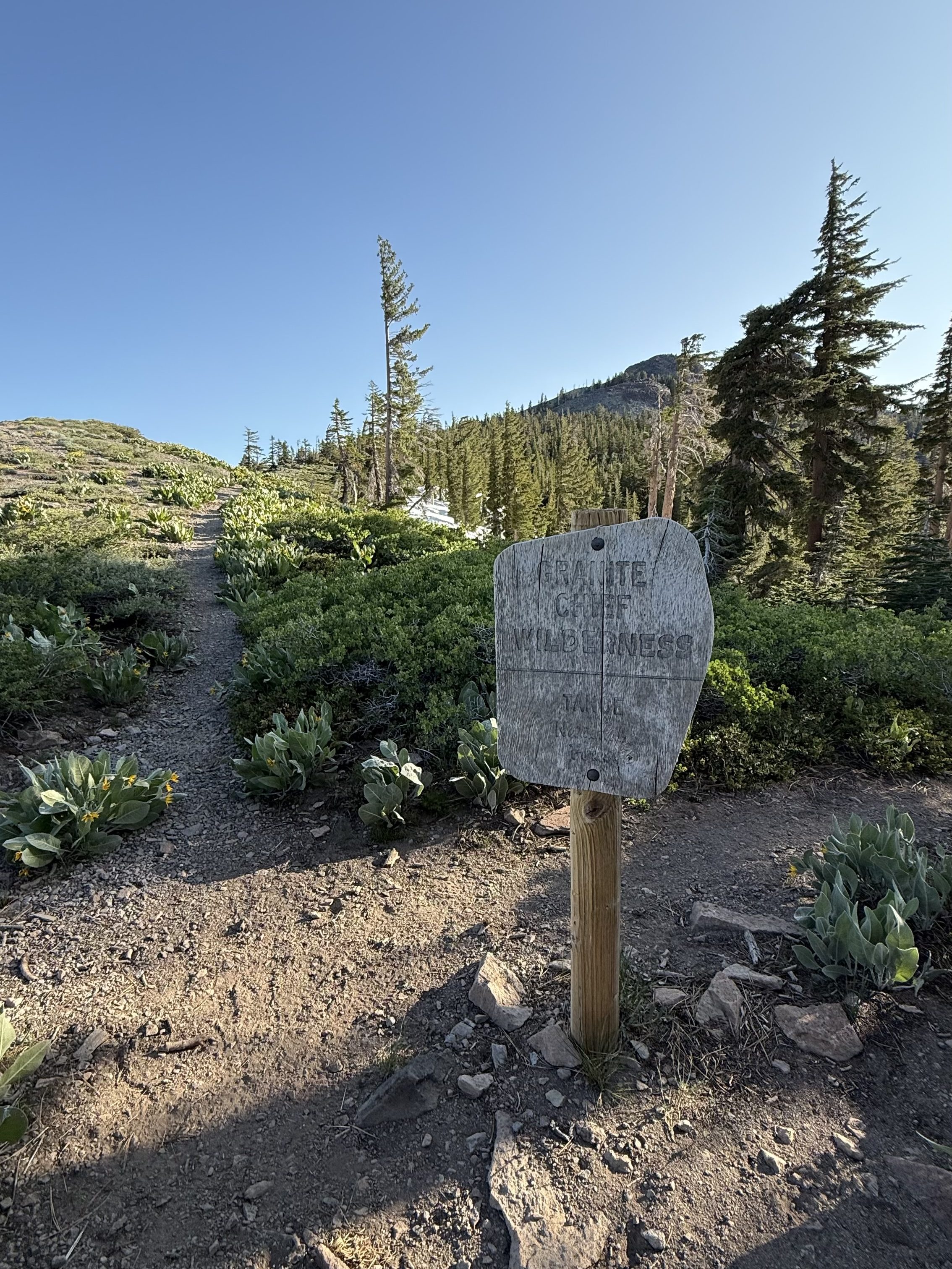 After a quick descent to North Fork Blackwood Creek, the trail climbed up and into the Granite Chief Wilderness, where the trail also split from the PCT. After passing the turnoff for the Twin Peaks Summit, the trail descends and follows Ward Creek. My achilles was bothering me today and I was thinking that maybe it was from the heel back of my shoes which had not fully been broken in before starting this hike. Walking along Ward Creek really felt like a drag with my injured achilles and I started to limp to accommodate. I ended up folding down the back of my shoe, so it was more like a slip-on than a sneaker, but it was helping to ease my achilles pain so I stuck with it like that for the rest of the day.