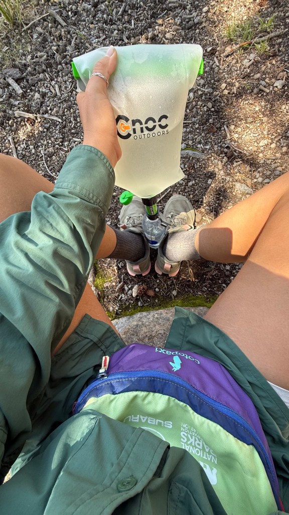 I sucked on cherry Ricola’s to stave my thirst and keep my mouth from going dry. Finally I came upon the “reliable stream.” I took off my pack, filled up my water bladder and sat against a boulder to filter and drink until I felt rehydrated. I had some snacks as I “camel-ed up” for the rest of the day, not knowing how reliable the upcoming water sources would be.
