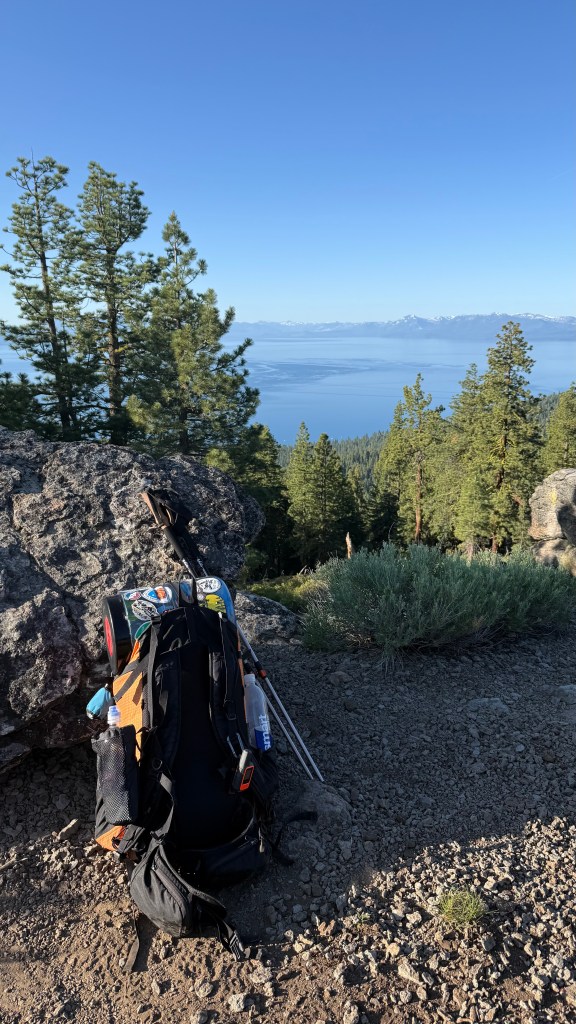 I woke up to a beautiful sunrise over Lake Tahoe. I was in the middle of my longest dry stretch of 17 miles between water sources. It’s not a good idea to rely on finding water caches from trail angles, and I didn’t cache any water myself so I would have to rely on streams and lakes along the way. Knowing there would be several water stretches that were 10 miles or more, I planned to hike bigger mile days to ensure I would come across a water source every day.