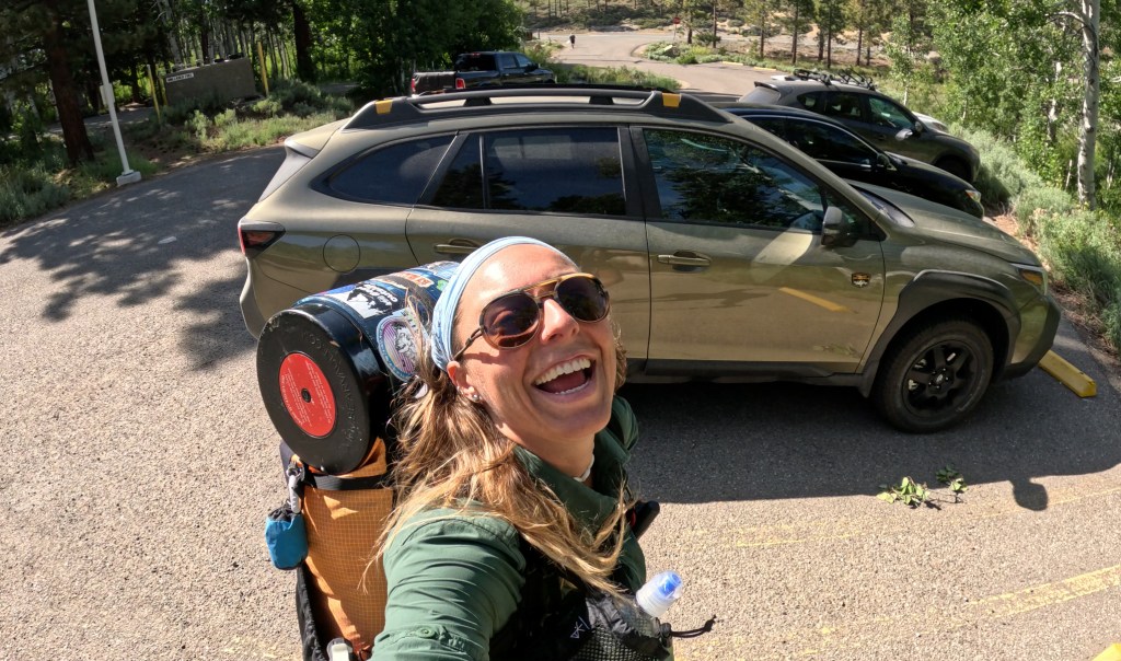 Finally there was a break in traffic that seemed long enough for me to sprint across. Sprint is a generous word for the max speed of someone carrying a 25 pound backpack after already hiking 22 miles that day. But I made it! Soon, the trail head with Felisha, my 2025 autumn green Subaru Outback Wilderness, was in sight. She looked exactly as she did when I left her 9 days ago. I was greatly relieved that no bear or person had broke in while I was away. I felt the weight and pride and satisfaction accomplishing my goal as I exclaimed, “I did it! I did it! I freakin’ did it!”
