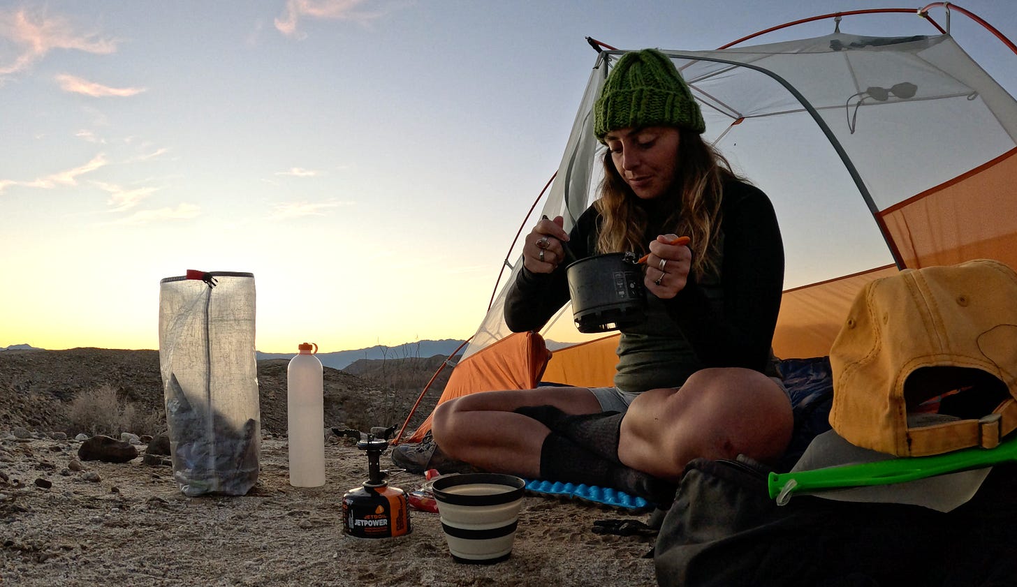 In this guide I share my minimal and lightweight solo camp kitchen gear list, tips for leave no trace, and backpacking meal suggestions.